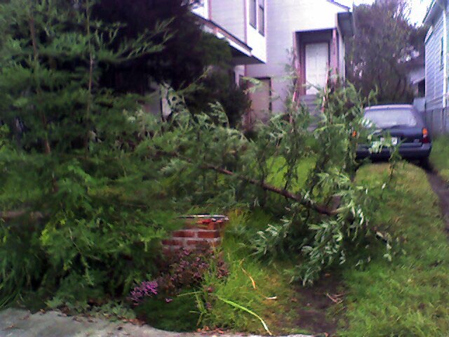 In addition to the usual hazards of having a potential tallest-living-thing-on-earth in one's front yard, this seedling doomed itself by planting itself directly under the phone wires.