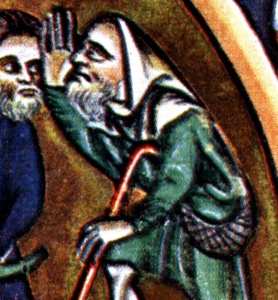 The Paris Psalter, created in France ca. 1230 (currently located in the Bibliotheque de l'Arsenal Paris, MS. 1186, f. 17) contains the earliest depiction that I have found so far of an object that seems to belong in the Shepherds Purse category. The object consists of a lozenge-oriented net that is either hung at both ends from the belt or is slung by a strap over the shoulder. The earliness of this example compared with the "heyday" of the style (and the general scarcity of 13th and 14th century examples) raises interesting questions.